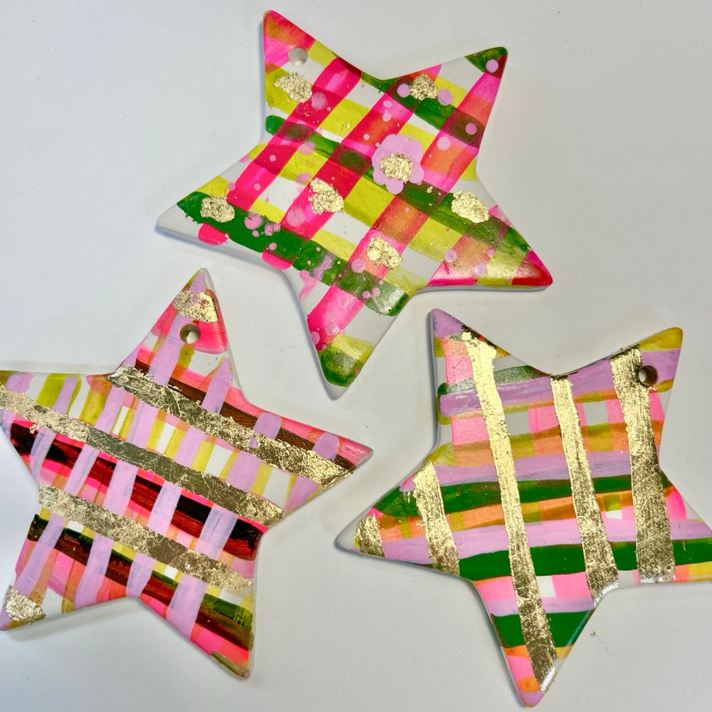 Original artwork by Tania Aliis. Handpainted beauties featuring gold leaf foil. Sprayed with a UV protection coat. Jute twine hanger.