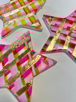 Original artwork by Tania Aliis. Handpainted beauties featuring gold leaf foil. Sprayed with a UV protection coat. Jute twine hanger.