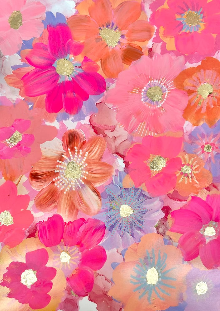 A3 size print with hand gold leaf foil and hand painted detailing over the top.