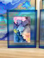 Artwork mounted in a STUNNING neon blue acrylic frame.