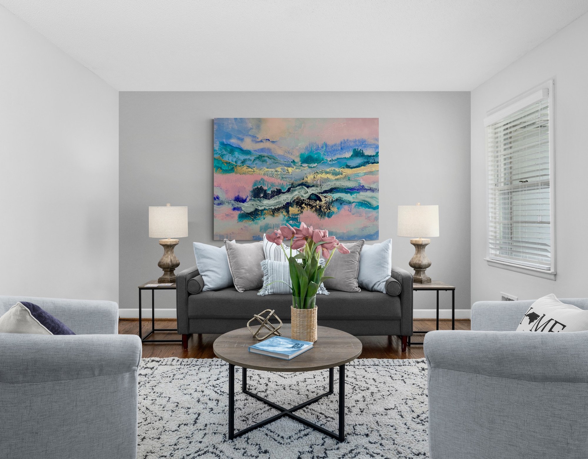 Artwork wraps around the sides of the canvas, stretched, ready to hang. (As per image 1 and image 2)